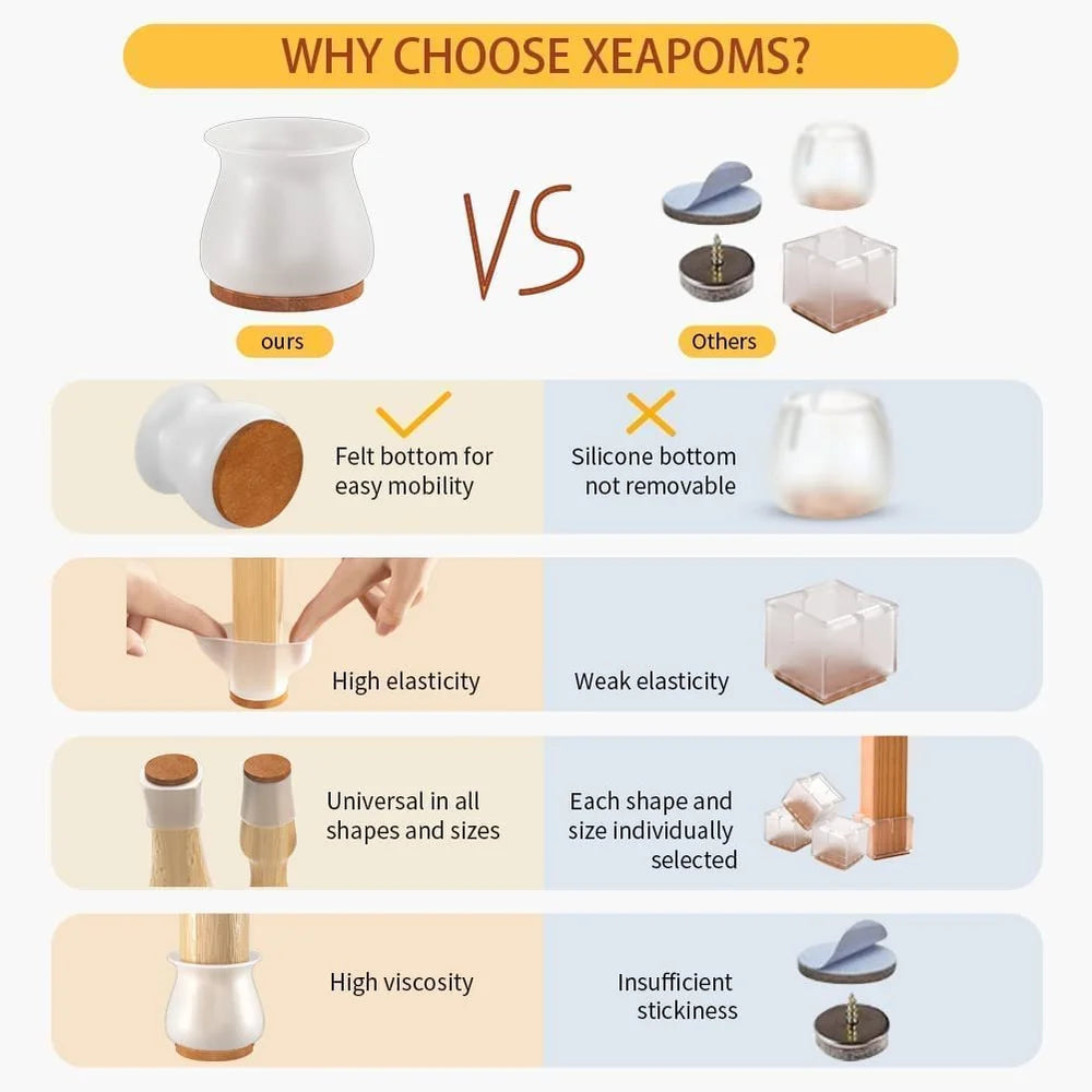 Designed to fit a variety of chair leg sizes effortlessly. The flexible high-quality silicone ensures a snug, secure fit without slipping or falling off, making it perfect for all types of furniture.