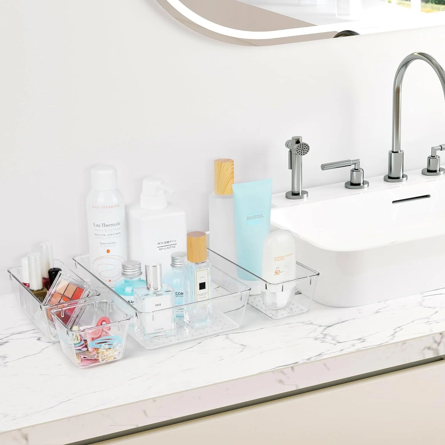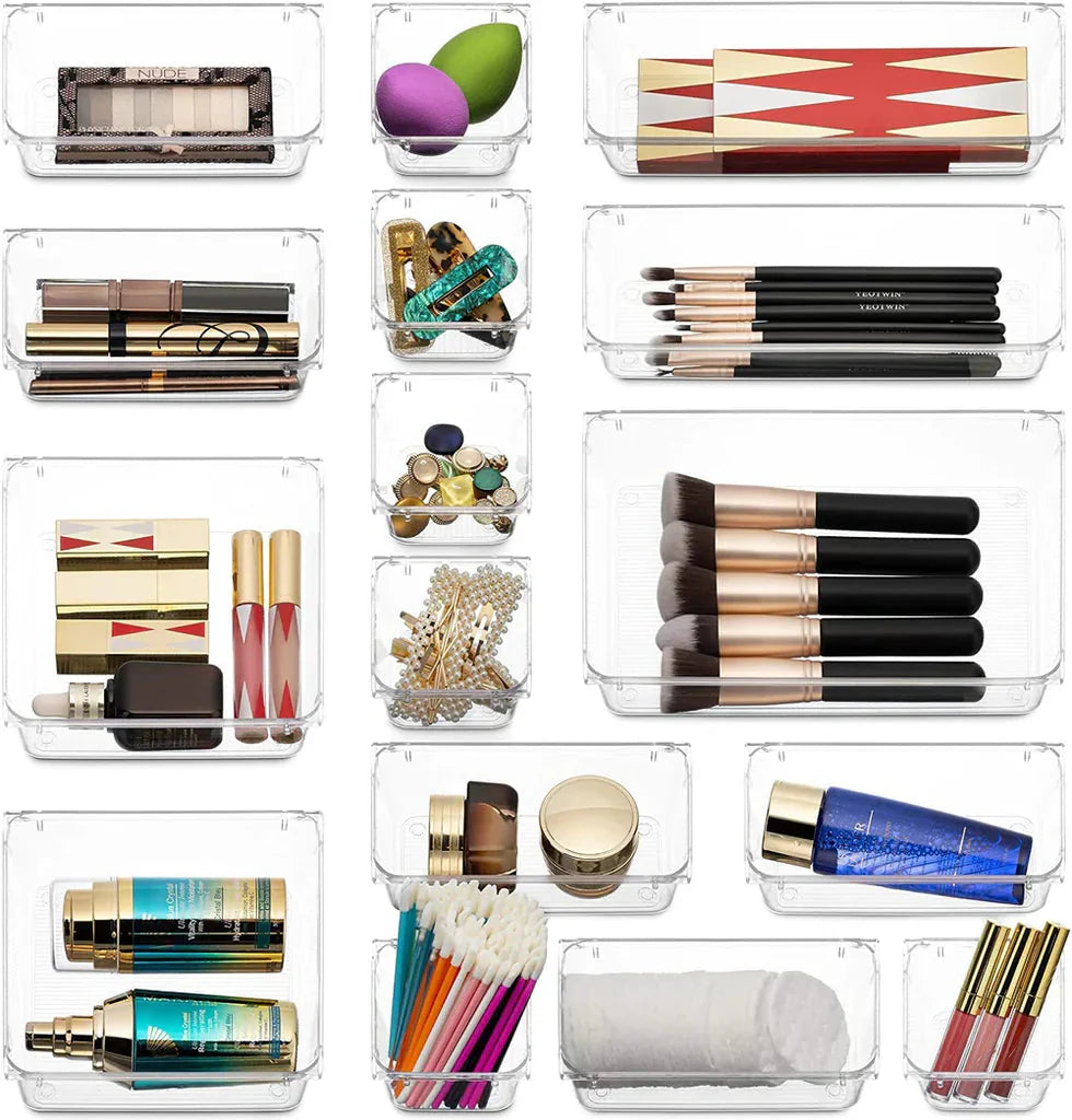 This set includes multiple sizes to suit your needs, offering a tailored fit for cosmetics, accessories, kitchen tools, office supplies, and more. Keep everything in its place, from tiny trinkets to larger items.